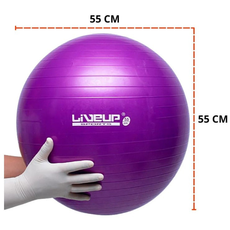 a bola suiça para pilates liveup sports pode ser incorporada a exercícios para trazer mais instabilidade para o corpo durante a execução dos exercícios