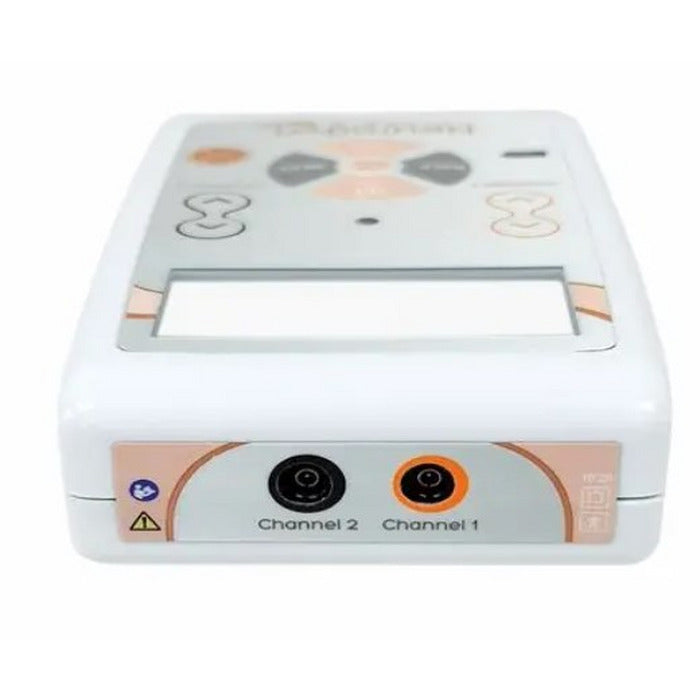 Com tamanho compacto, o aparelho pode ser operado com bateria de 9V ou conectado à rede elétrica e, ainda, possui 2 canais de saída com controles independentes de intensidade, teclas de disparo manual para as correntes TENS e maleta de transporte.